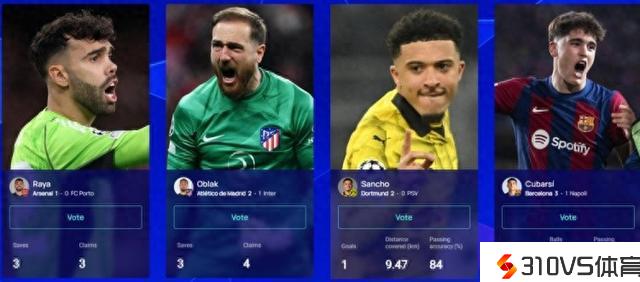 欧冠本周最佳球员候选:拉亚&奥布拉克领衔,桑乔&库巴西在列