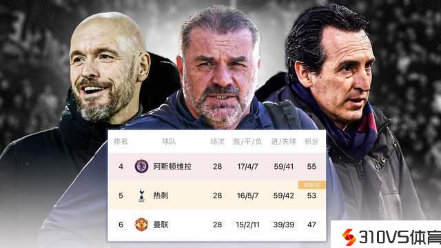 第4、5、6三个名次的队伍积分为55、53、47分,全体来看大约率会在他们中发生“最后能够”。托特纳姆热刺是完全没有欧战义务的,在欧冠小组赛被淘汰的曼联,也没有进入到欧联竞赛中,因此也是“无事一身轻”,可全盘的参与到赛事争夺战。反倒是阿斯顿维拉还有欧协联杯要打。