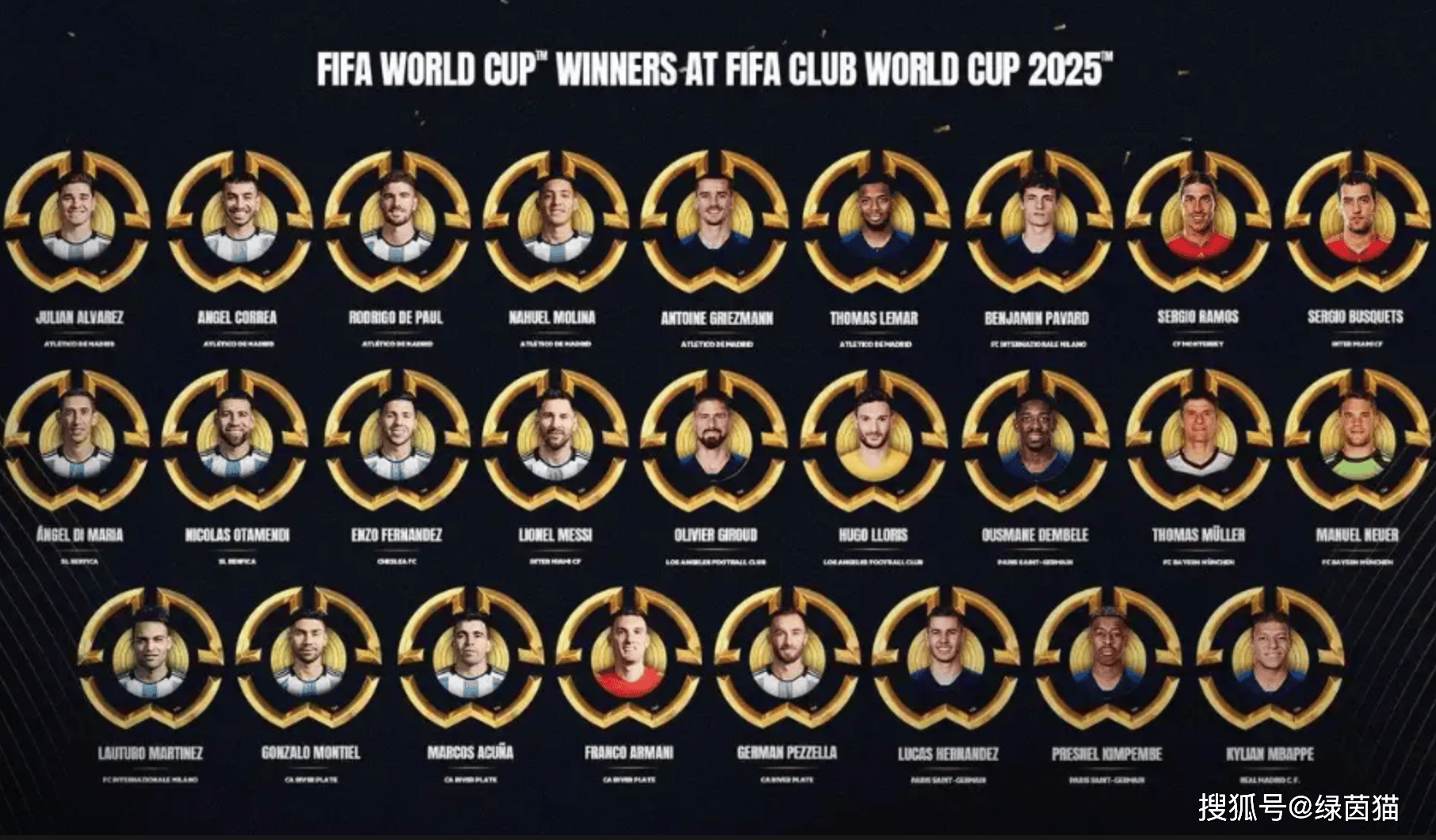 本届世俱杯可谓众星云集,迈阿密国际的梅西和苏亚雷斯、皇马的维尼修斯、贝林厄姆和姆巴佩,曼城的哈兰德、拜仁的托马斯-穆勒。值得一提的是,托马斯-穆勒在结束世俱杯之后离队,正式结束自己的25年拜仁生涯。同时世俱杯官方盘点了本届赛事当中,参赛球员中曾夺得过世界杯冠军的球员,一共有26人,阿根廷13人最多,法国9人,德国和西班牙各2人。