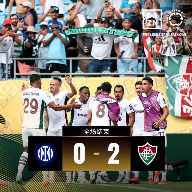 全场比赛结束,国米爆冷0-2不敌弗鲁米嫩塞,就此止步世俱杯16强,巴西劲旅成功闯入1/4决赛!世俱杯历史上,首次有欧洲球队在淘汰赛输给其他大洲球队2球!