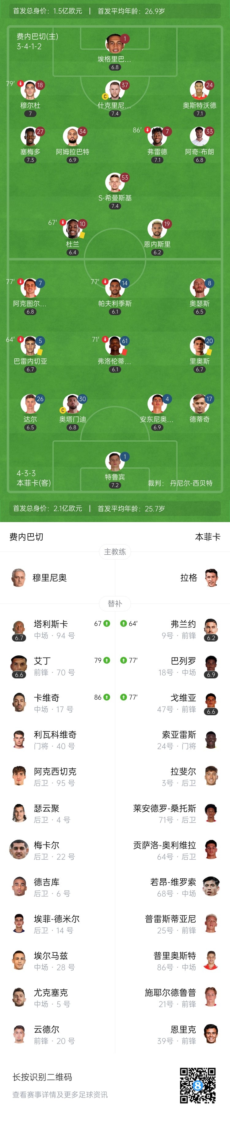 【双方首发及换人信息】