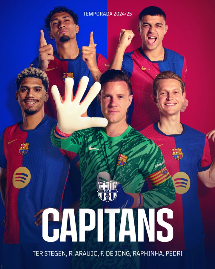 第二至第五队长的顺位分别是:阿劳霍、德容、拉菲尼亚、佩德里。