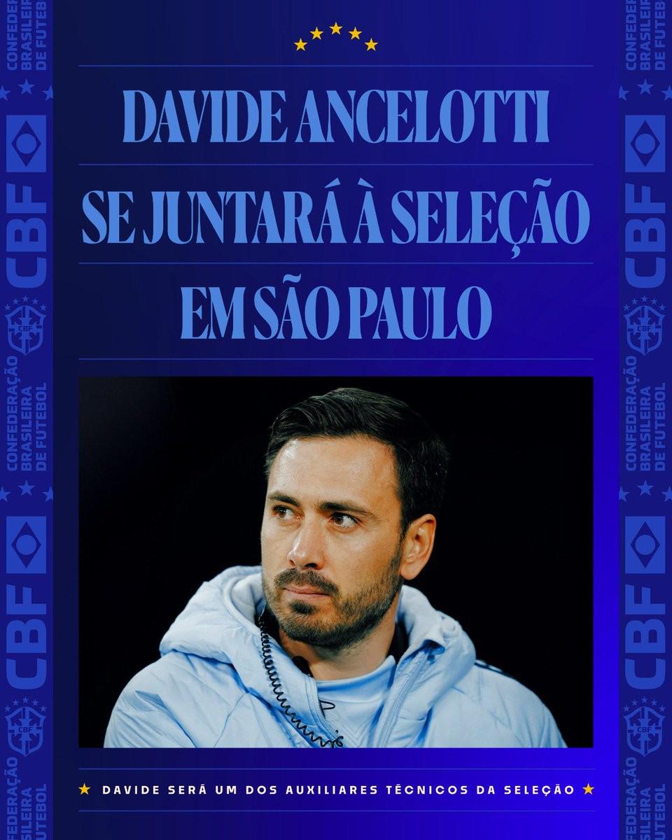 巴西足协官方宣布,达维德-安切洛蒂将于本周末抵达圣保罗,正式加入巴西国家队教练组。