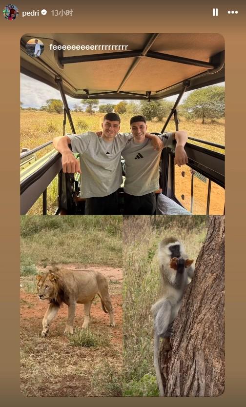 每位球员都选择了不同的度假目的地与行程,社交媒体上也纷纷晒出各位球星的度假行踪。以佩德里为例,他正与家人在坦桑尼亚度假,他在坦桑尼亚塔兰吉雷国家公园晒出了与兄弟及父母的多张合影,并且还晒出了公园内的动物。