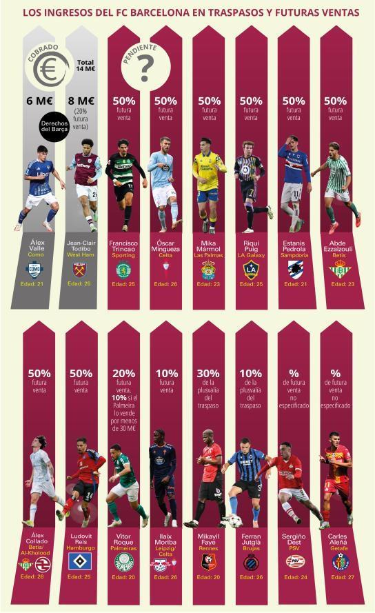 在这方面,俱乐部已通过出售托迪博(西汉姆联已执行其购买选择权,巴萨确保获得20%的转会分成,即800万欧元)和巴列(科莫执行了其600万欧元的购买选择权)确保了1400万欧元的收入。