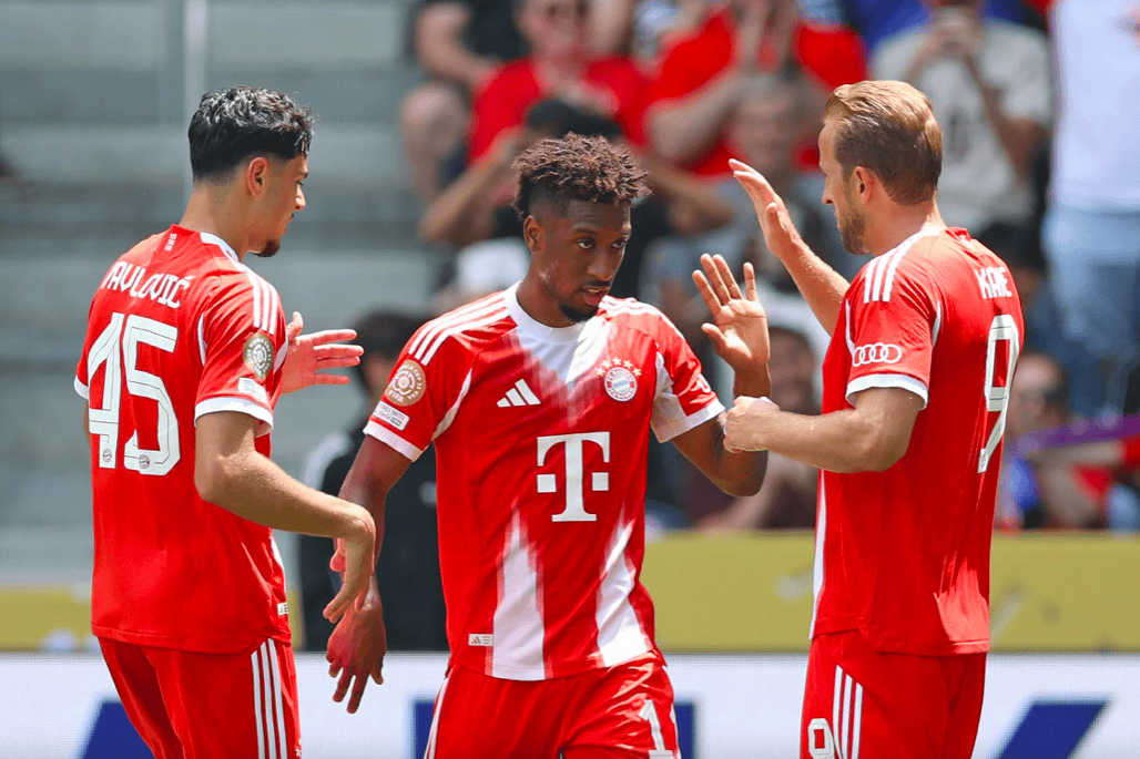开场只有5分钟,拜仁就打破僵局,基米希开出角球,塔无人盯防头球助攻,科曼接力破门。