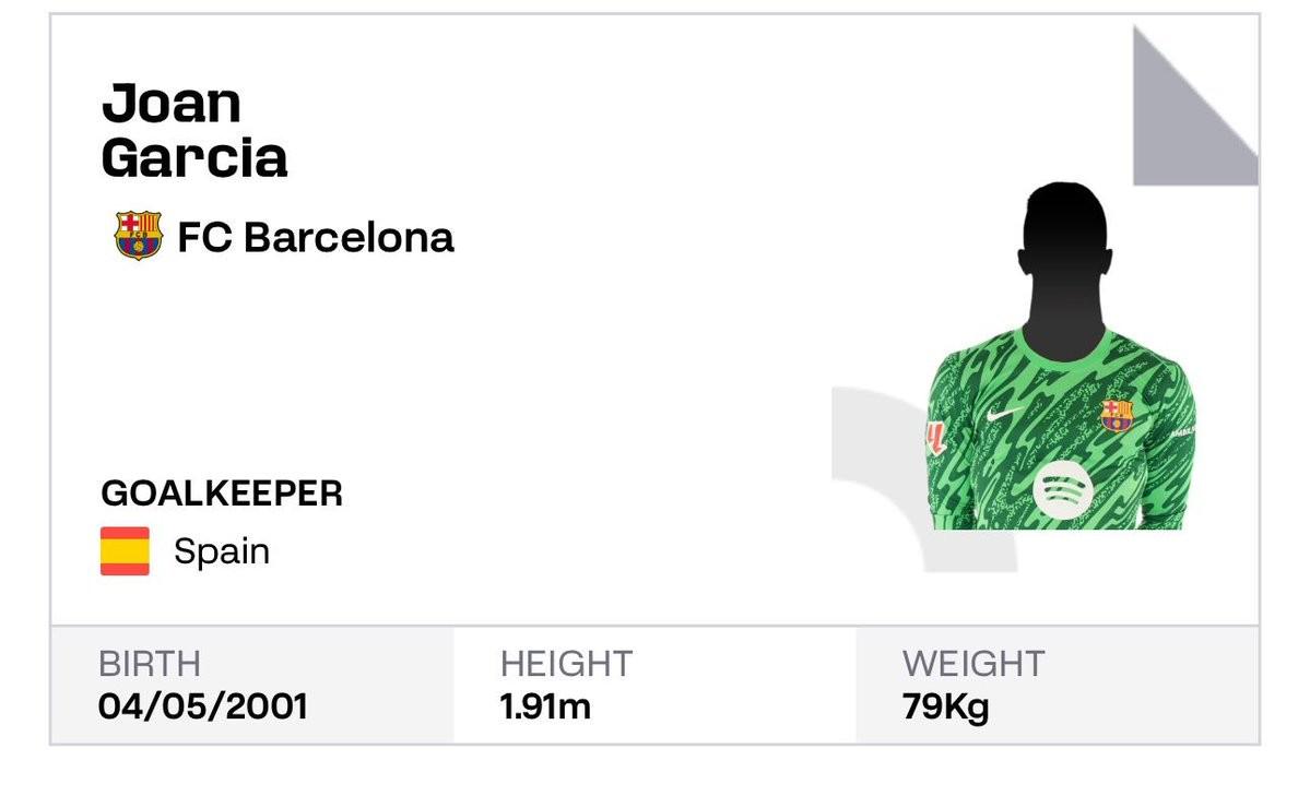 西甲官网显示,巴塞罗那已经为霍安-加西亚完成注册,这位新门将出现在巴萨球员名单中,不过还没有显示头像和号码。