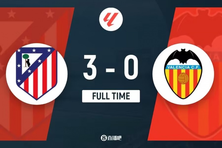 全场比赛结束,马竞3-0瓦伦西亚。