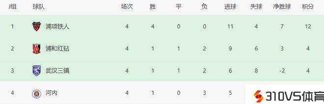 前面4轮亚冠小组赛战罢,武汉三镇1胜1平2负,积4分,目前和浦和红钻积分分歧,但由于净胜球少于浦和红钻而排在J小组的第3位。假设能打好前面这两轮小组赛,武汉三镇照旧有希望从该小组杀出重围,挺进亚冠16强。