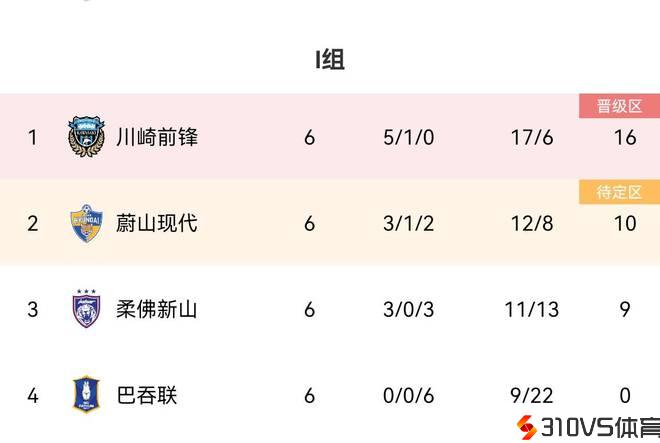 亚冠I组:川崎前锋5胜1平头名出线,蔚山10分第二,巴吞联0分垫底