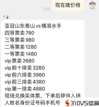 泰山vs横滨球票全部售罄,黄牛票150元的卖780,1000的卖4880!