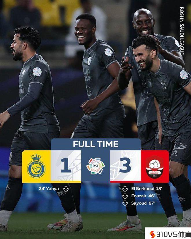 虽然6分钟后,C罗腾空斩中柱协助队友叶海亚觅得良机扳回一城,但下半场刚末尾,利雅得成功队的后防线再度被打穿。尔后,利雅得成功全力反攻但却迟迟无法进球,反而让对手在第87分钟锁定胜局。