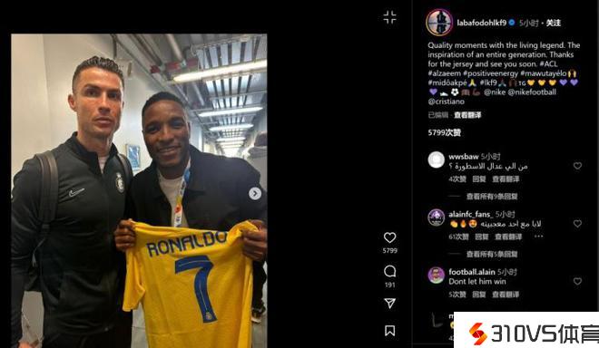 阿尔艾因球员晒和C罗合影:活着的传奇,鼓舞了一代人