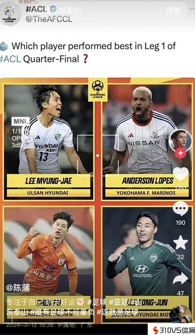 在中国男足动身前往新加坡前,主帅伊万科维奇接受了新华社的专访,其中谈到了往年在亚冠发扬出色的老东家山东泰山。往年亚冠联赛,山东泰山队打进八强,最终不敌横滨水手。对此,伊万科维奇评价:“山东队进入...发表于:03月21日
