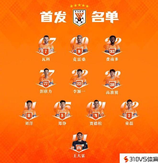 山东泰山在俱乐官方社交账号发布了本场竞赛的首发阵容,贾德松、克雷桑、卡扎3名外援首发,另外刚刚重返国足的归化国脚费南多也退场。