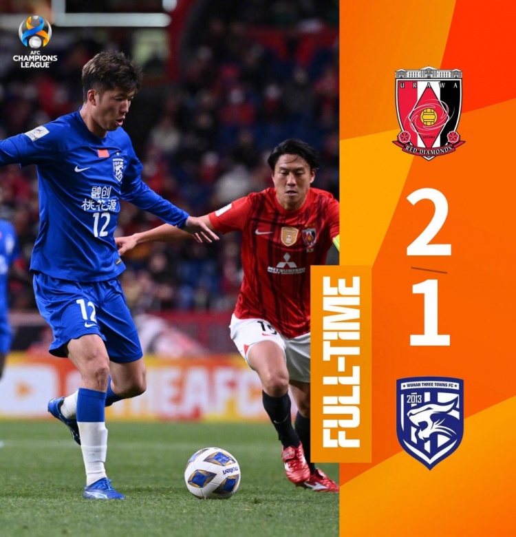 全场比赛结束,武汉三镇1-2浦和红钻,提前一轮出局。