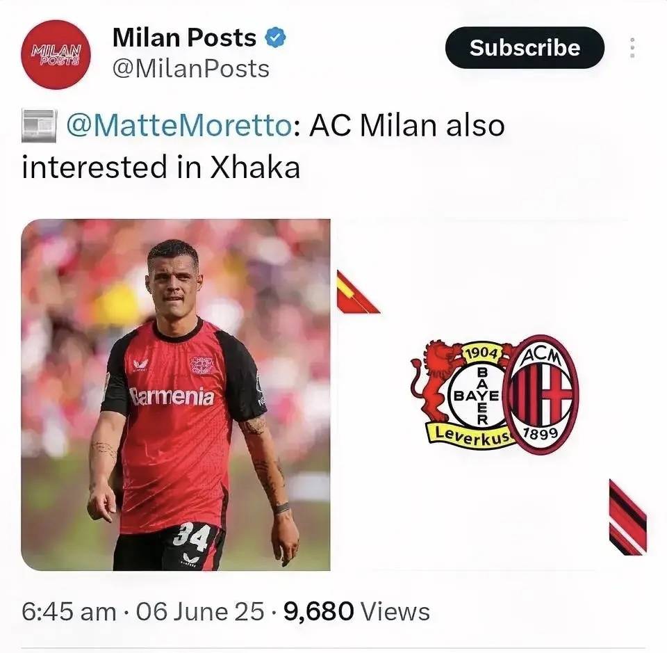 意甲媒体透露:米兰有意扎卡,并愿意以1500-2000万欧将其招入麾下