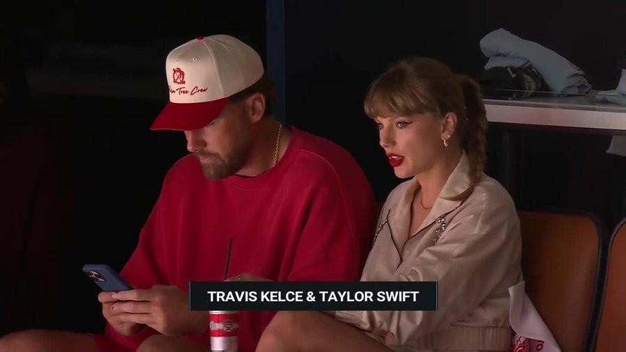 本场比赛,Taylor Swift与男友凯尔西一同来到现场观战。