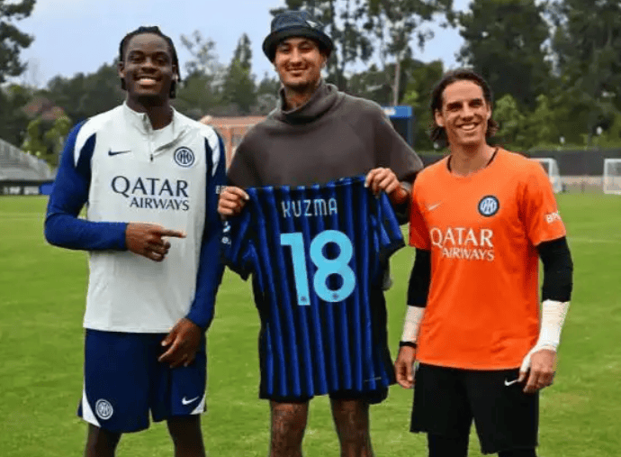 值得一提的是,NBA球星库兹马也莅临国米训练场,并获赠印有自己名字的国米18号球衣,库兹马2米06的身高与身高1米96的比塞克形成了有趣对比,比塞克进攻有特点,但防守存在短板,部分国米球迷曾设想将其改造成前锋,不过这一想法如今看来不太现实。