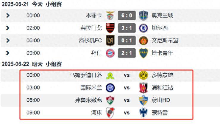 世俱杯第8个比赛日:多特国米迎来弱旅盼首胜拉莫斯战河床