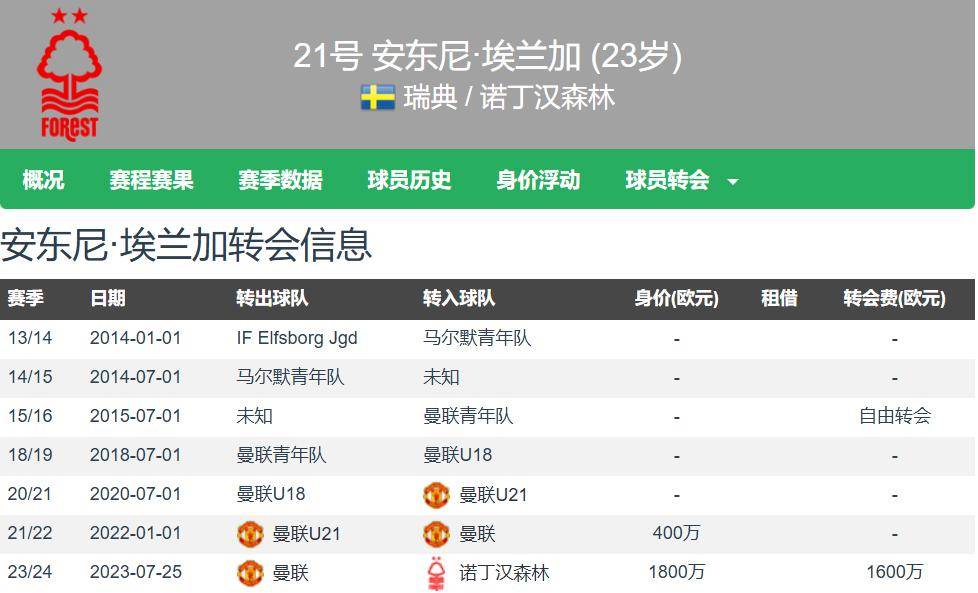 来自意大利转会专家罗马诺的最新报道,欧冠球队纽卡斯尔联将以5500万欧元的总价从诺丁汉森林签下23岁瑞典边锋安东尼-伊兰加。这笔交易对于曼联而言是莫大的讽刺,好的球员自己不会用,在诺丁汉森林踢出身价被纽卡斯尔联高价引进。但对曼联来说也有好消息,那就是伊兰加当时从曼联加盟诺丁汉森林的合同中加了转售条款,转会利润的15%,因此曼联从中可以获得超过500万英镑的分成。