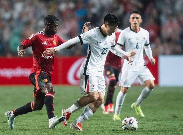 北京时间5月30日晚,在香港大球场进行的一场友谊赛里,中国香港队1-3不敌英超曼联队。港脚孙铭谦在社交媒体里晒照并感慨道:“能够与顶尖球员同场竞技,心情非常激动❤️感谢这次经历!”