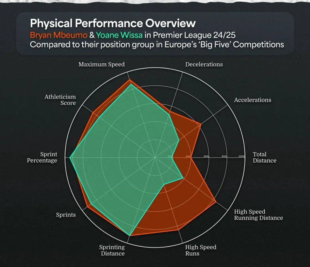 姆贝莫上赛季在英超的20个进球和8次助攻,足以充分说明鲁本·阿莫林想要他加入曼联的理由。但还有更多原因,其中第一项肯定是这位25岁喀麦隆国脚的跑动。