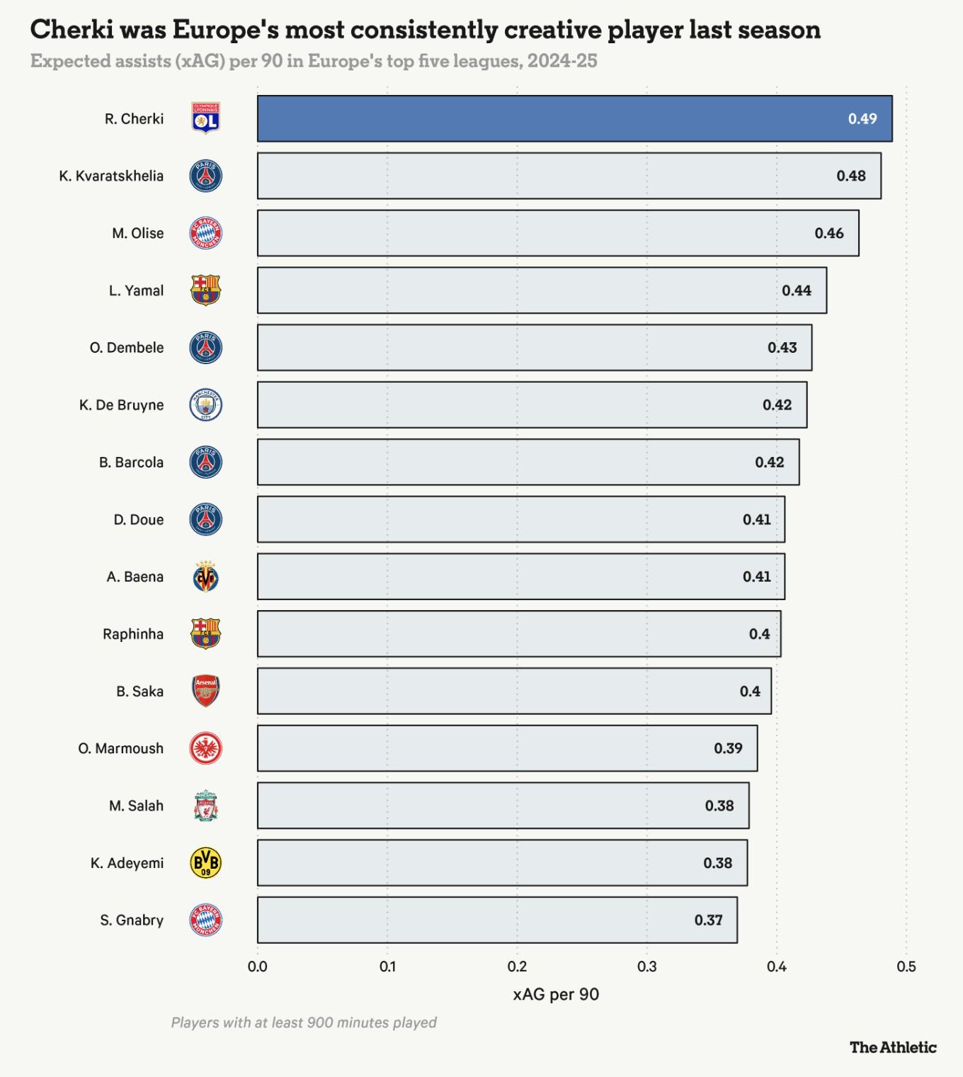 这位21岁的球员拥有令人难以置信的天赋,在获得自由在场上各个空档游弋时,他总能持续不断地制造创造力。上赛季,在欧洲五大联赛中,没有任何球员在每90分钟内为队友创造的高质量机会比他更多;他是那个充满灵感的人,是变数,是在对方防线退得很深时可以破防的那个人。