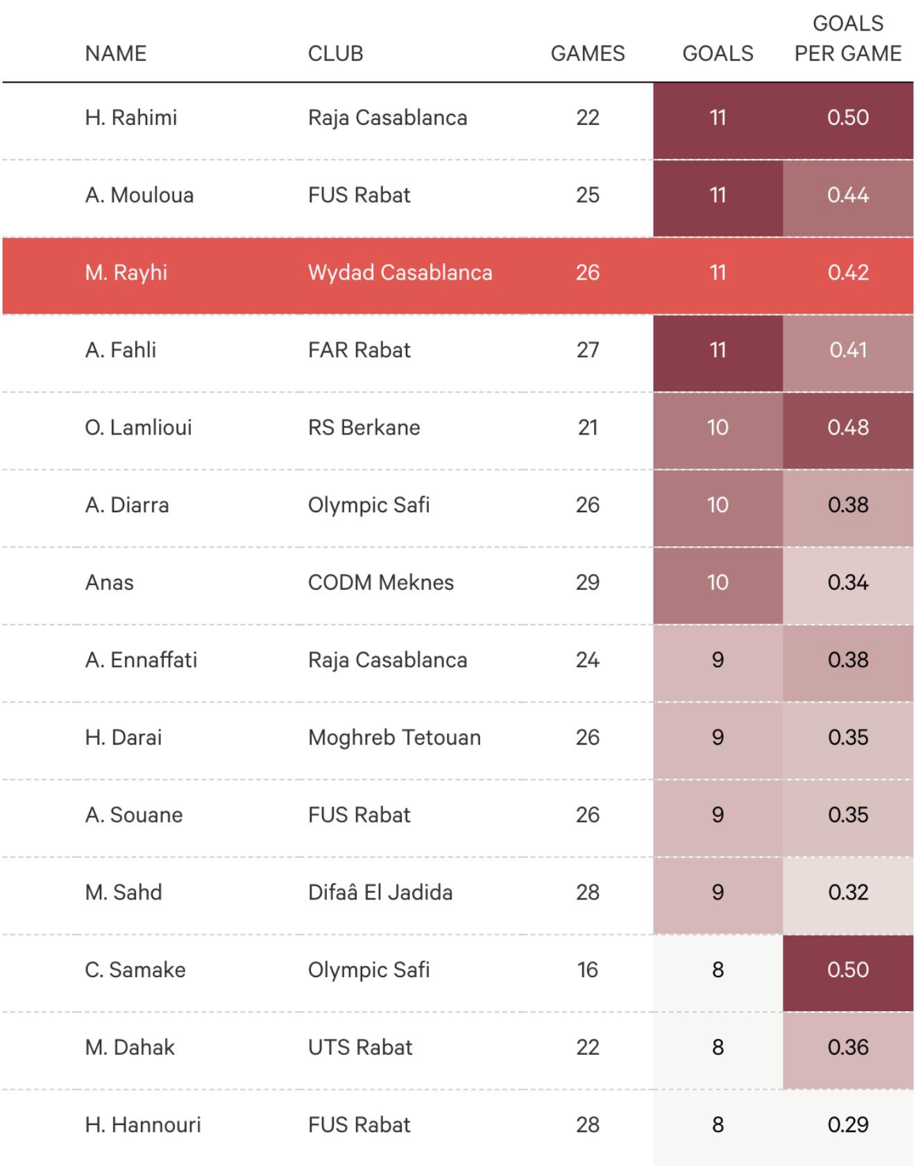 他的感激之情并非没有理由。拉辛本人也是去年夏天才刚从沙特甲级联赛的查巴莱俱乐部加盟卡萨布兰卡维达德,他最终以11粒进球,成为2024-25赛季摩洛哥超级联赛的并列最佳射手。