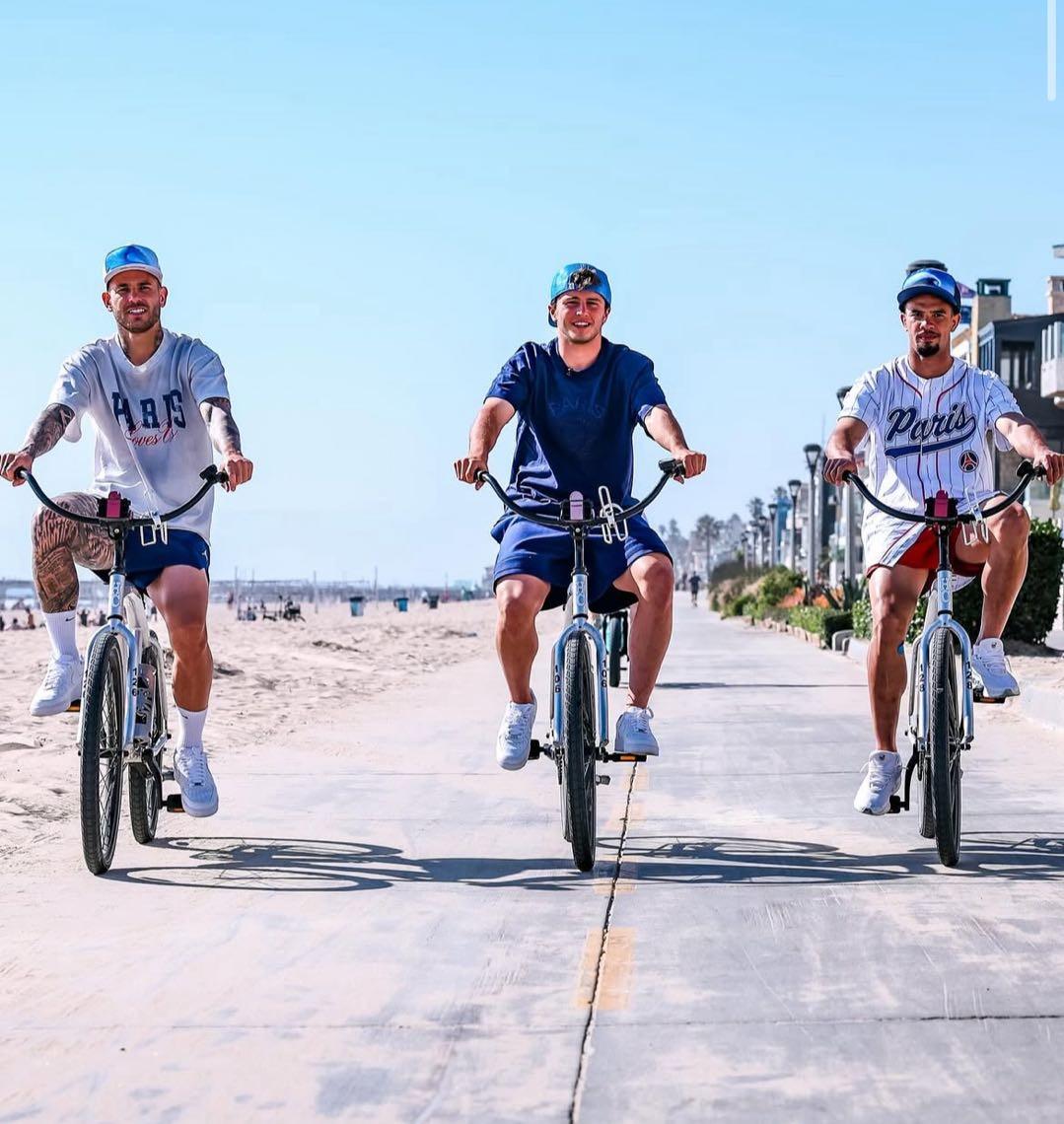 享受洛杉矶,内维斯与巴黎众将在威尼斯海滩骑车