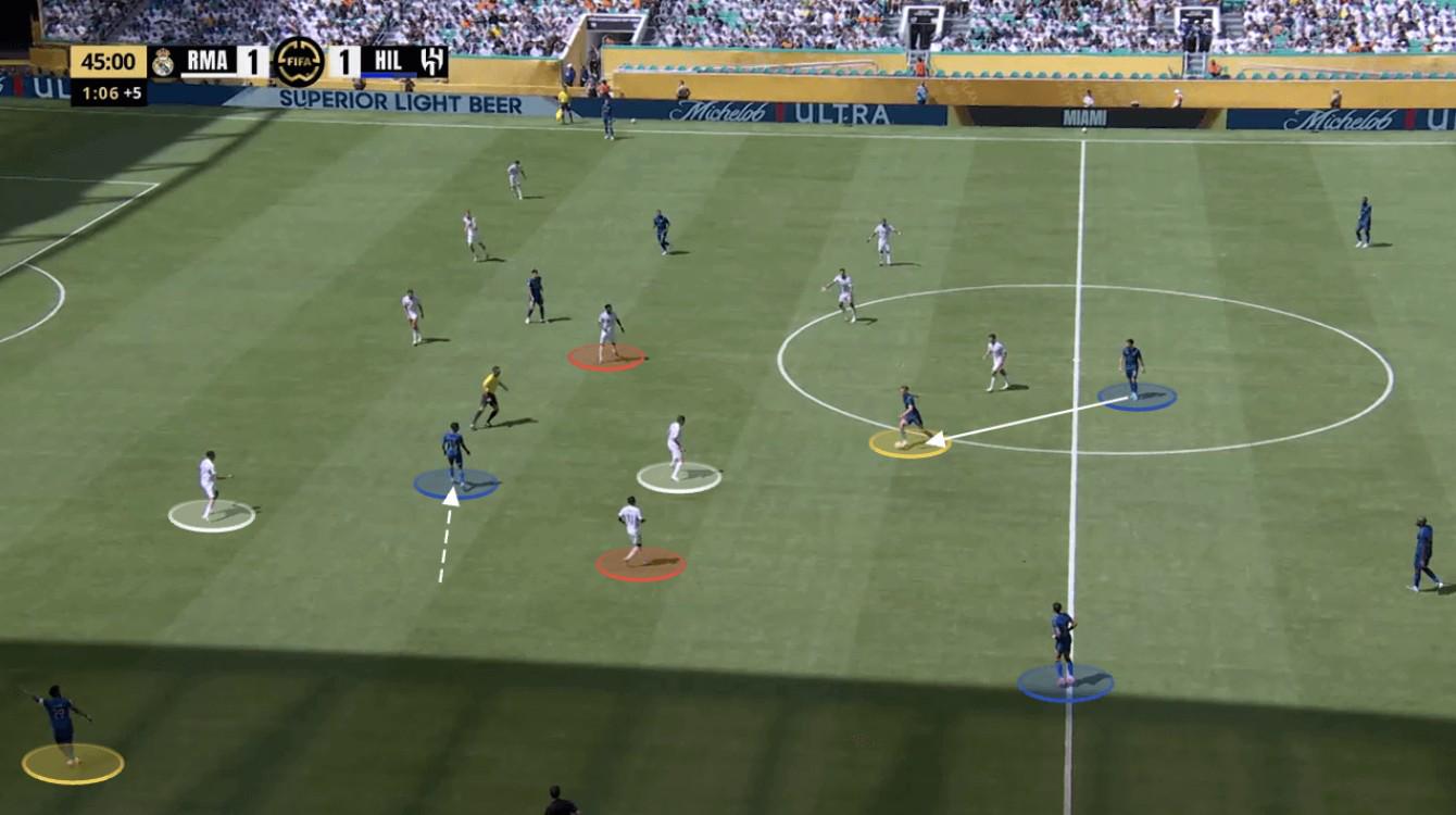 比赛后段,新月再度在左路形成人数优势:米林科维奇-萨维奇分球给穆罕默德-卡努时,洛迪从迪亚斯身后悄然前插。