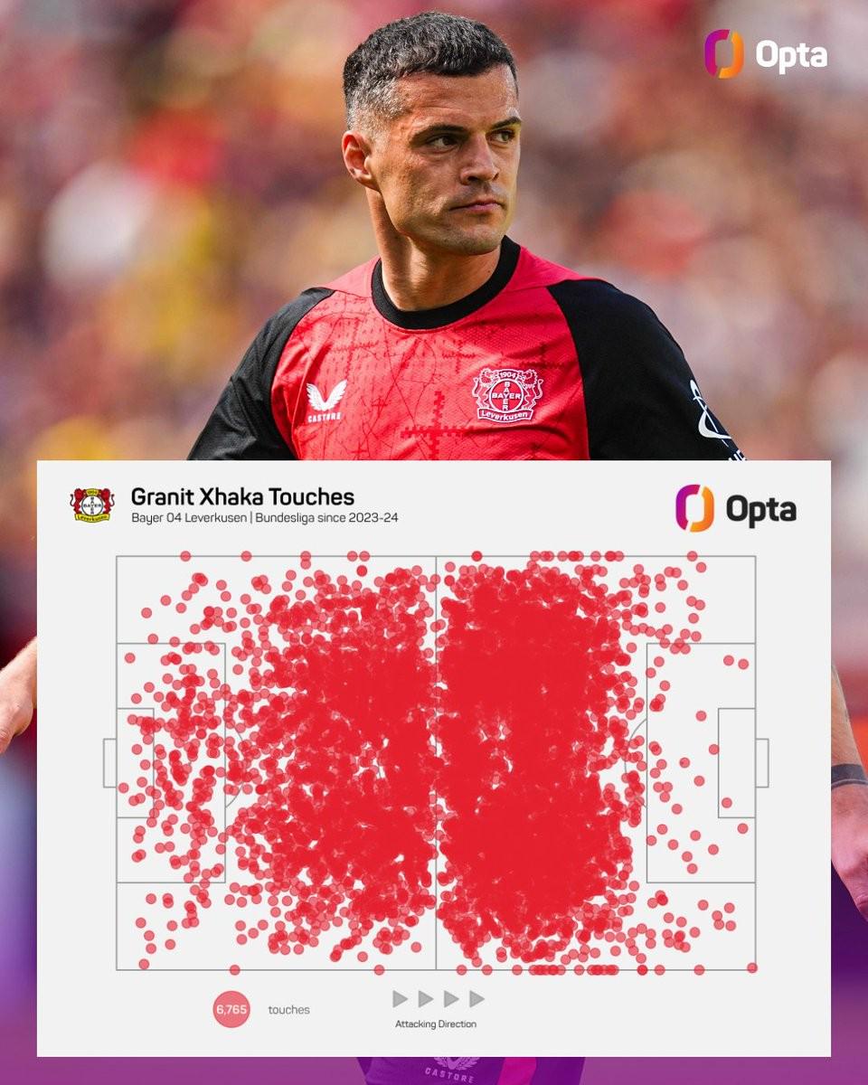 从Opta公布的触球热图可以看出,扎卡几乎覆盖了整个中场区域,堪称球队运转的“发动机”。