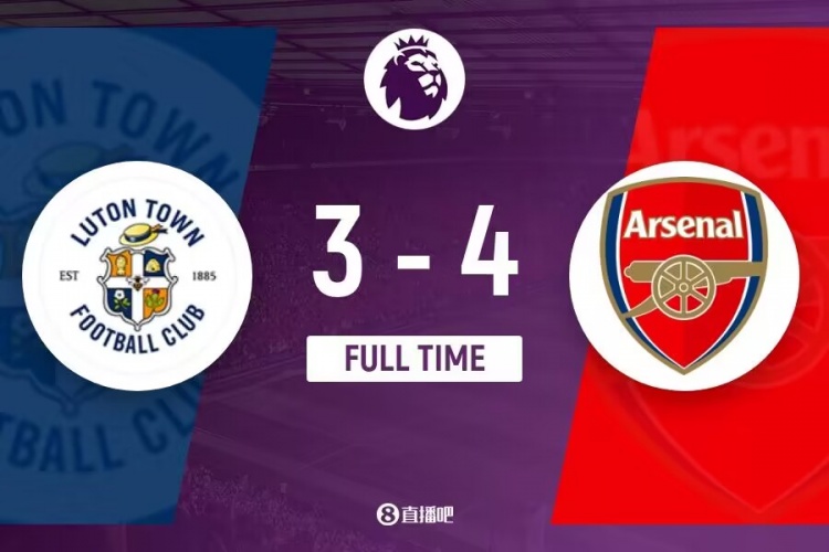 下半场伤停补时6分钟,全场比赛结束,最终阿森纳4-3卢顿。