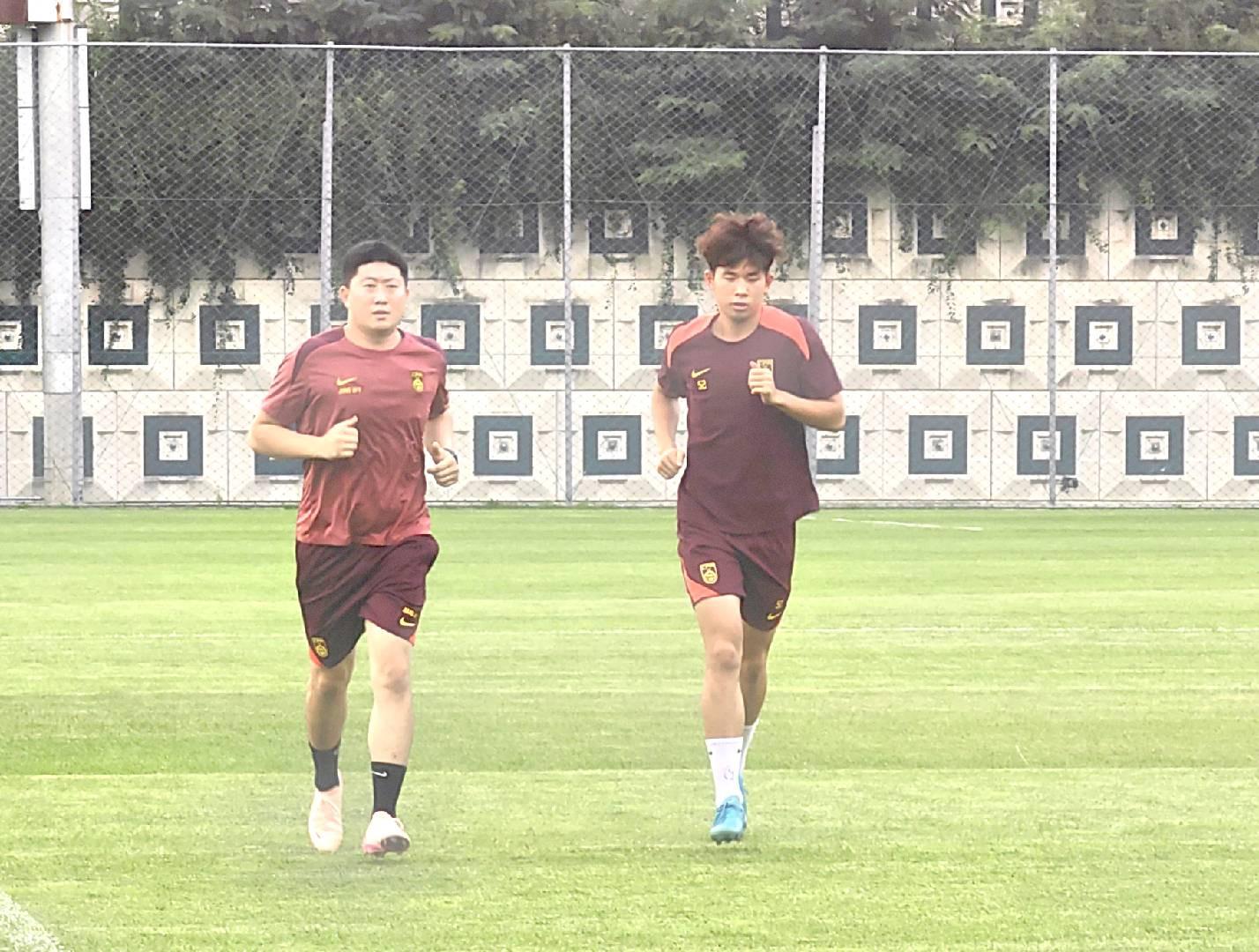 国足替补球员共11人参加今日训练,刘诚宇独自场边跑圈