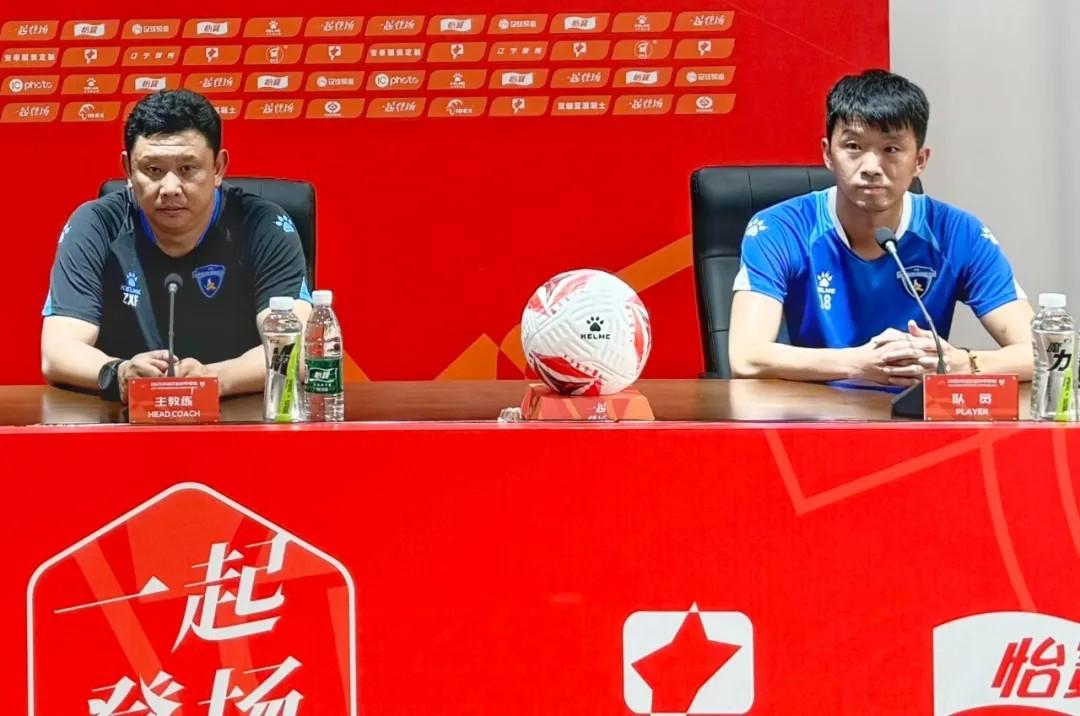 北京时间7月12日,在中甲第16轮,南京城市客战大连鲲城的赛前,南京城市主帅张晓峰和队员董洪麟出席了新闻发布会。