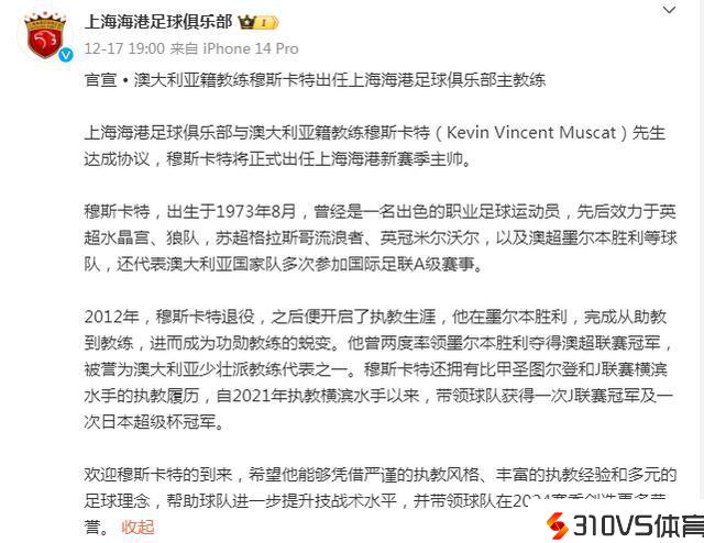 本赛季收获超霸杯、足协杯和中超3个亚军,全体上表现不错,但是在足协杯以及亚冠惨败横滨水手也清醒的看到球队与其他实力球队的差距。特别是莫伊赛斯、费莱尼离队,外征引进曾经提上日程。而在12月18日早晨19点,泰山队竞争对手上海海港率先迎来官宣,穆斯卡特将正式出任上海海港新赛季主帅。50岁的穆斯卡特,先后效能于英超水晶宫、狼队以及澳超墨尔本成功等球队。2021年执教横滨水手以来,率领球队取得一次J联赛冠军及一次日本超级杯冠军。本赛季亚冠小组赛两次打败泰山队,小组第一出线。