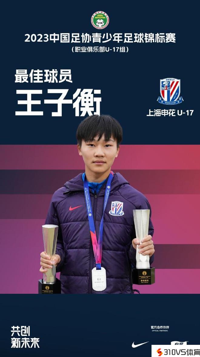 官方:上海申花U17球员王子衡中选中青锦U17组最佳球员