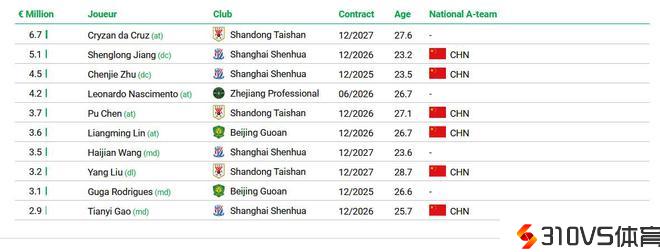 CIES中超球员价值榜:克雷桑670万欧第一,蒋圣龙510万欧第二