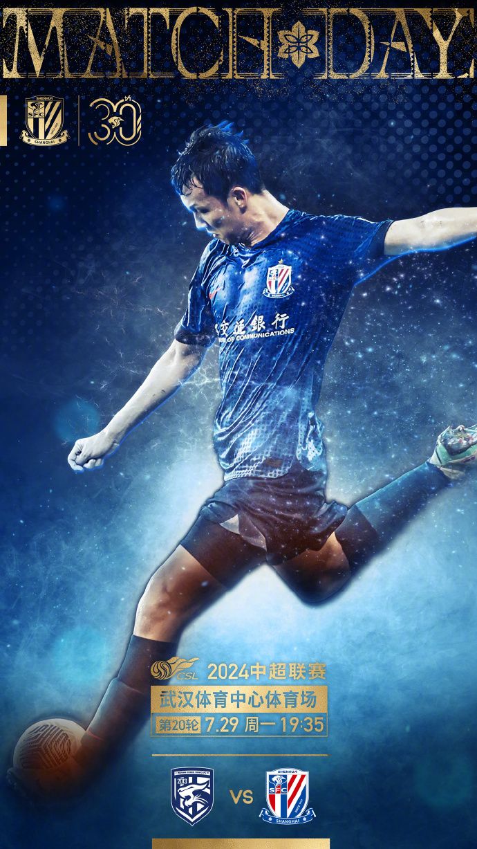【一图流】上海申花公布客场对阵武汉三镇赛前海报:高天意出镜