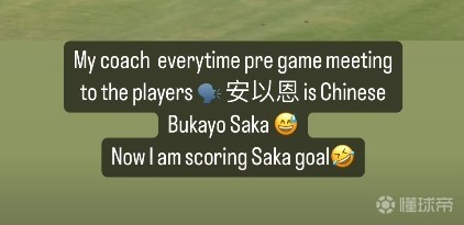 安以恩在社交媒体里写道:“我的教练在每一次赛前准备会时都会告诉队员们🗣️:‘安以恩是中国萨卡😅’现在,我攻入了萨卡式进球🤣”
