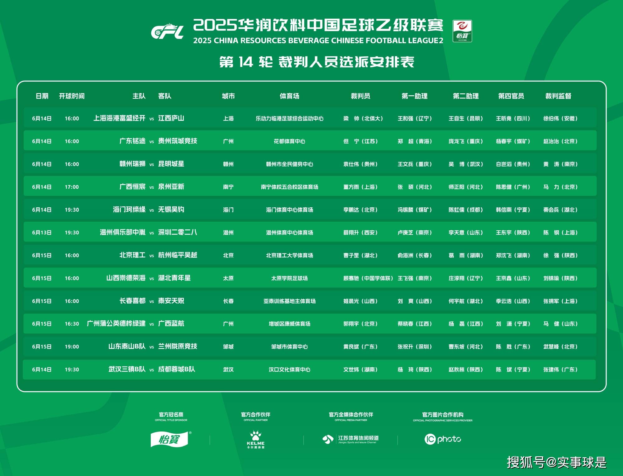 6月13日至15日,2025赛季中乙联赛预赛阶段展开第14轮角逐。赛前,中国足协发布了本轮裁判人员选派安排表。根据裁判选派信息,本轮负责主哨的裁判员中,出现了女裁判的身影。这在本赛季还是首次。
