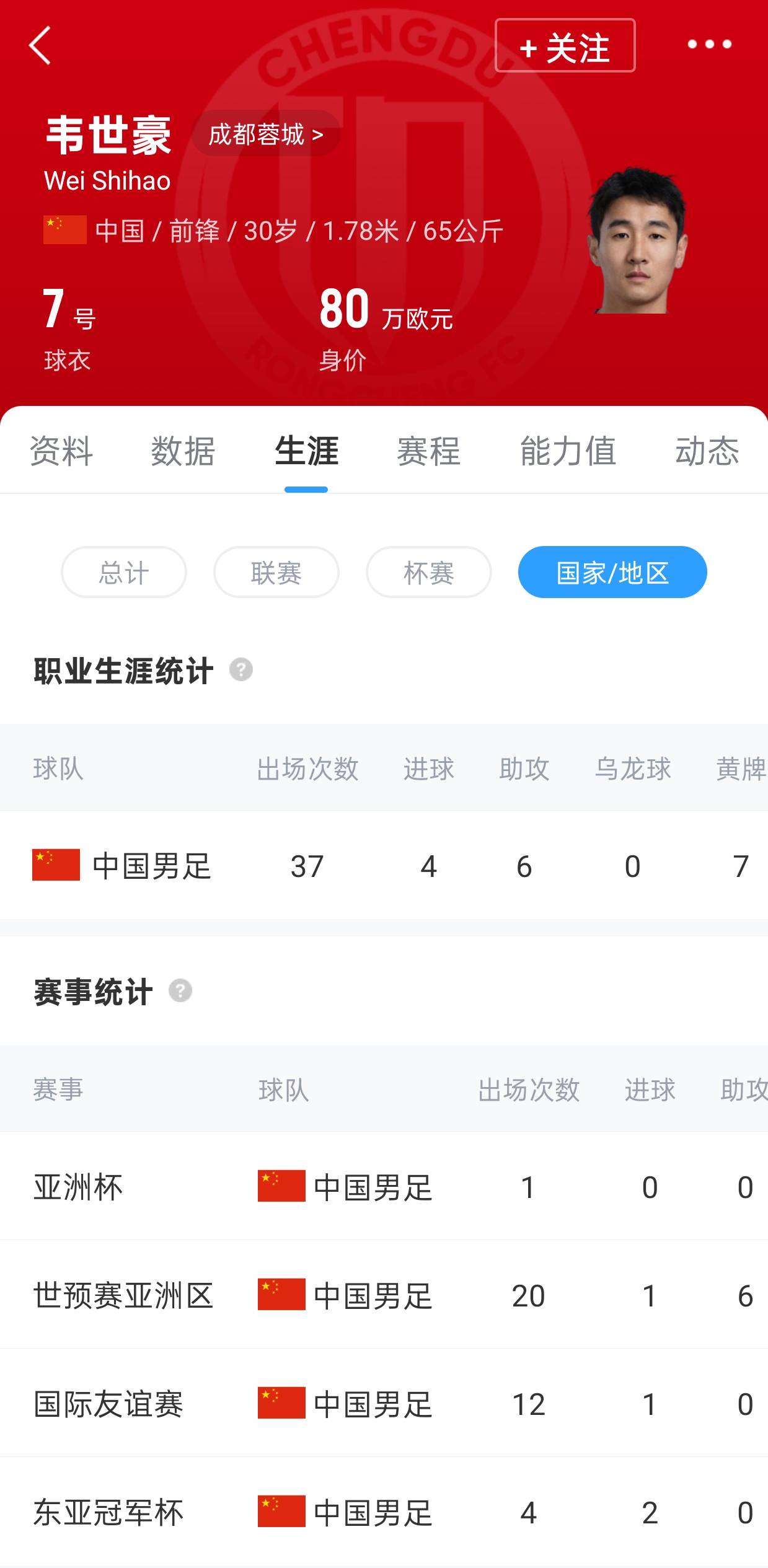 33岁的国足队史射手王(37球)的武磊已经伤病缠身,下一届世预赛基本上踢不了;而三十而立的韦世豪真是名气>实力,本届世预赛踢完,看似国足最强实力的韦世豪仅打入1球,还是对阵新加坡,18强赛0进球。