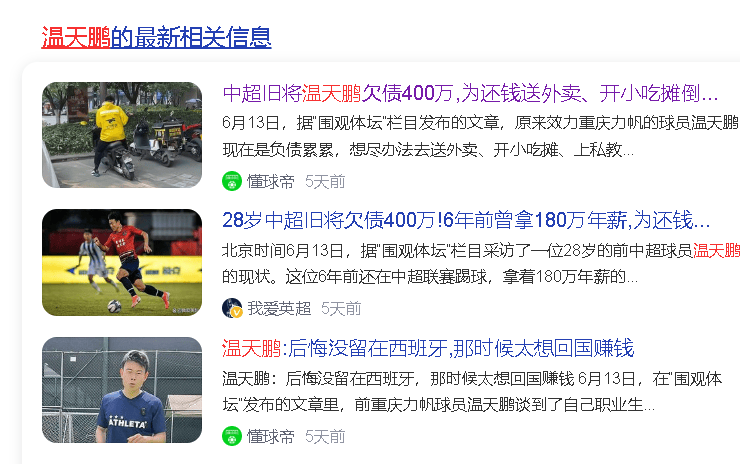 他的足球生涯刚被终结,他就没有收入来源,只能做生意,没有想到血本无归,还欠下几百万外债,每天被催债电话打爆,他只好去送外卖,所以我们才在开头看到一位前中超球员送外卖的情形,他的遭遇,虽然值得同情,但是又不值得同情,为何呢?