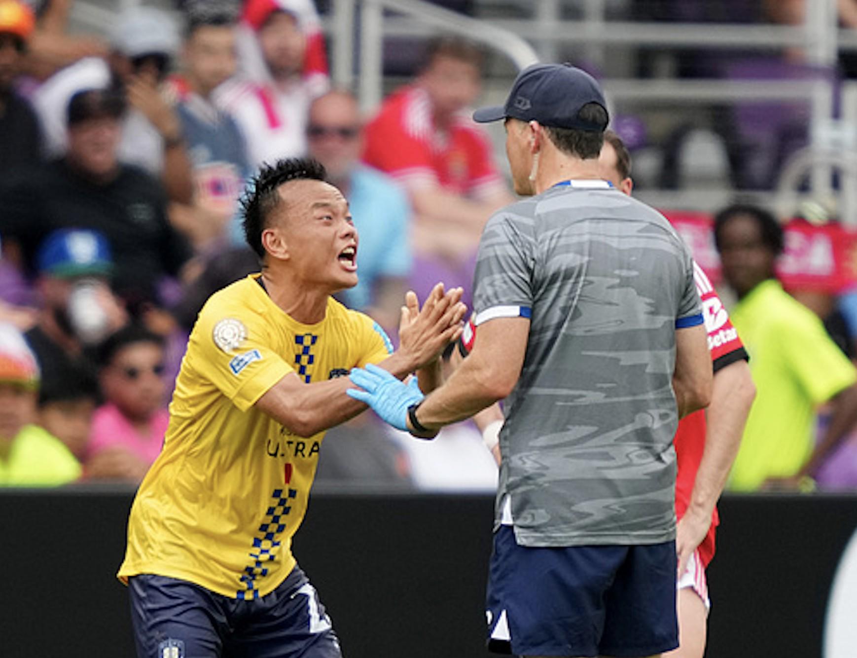 尽管周通再三恳求,奥克兰城教练组仍坚持在中场休息时将其换下,由西班牙中场加里加替补登场。