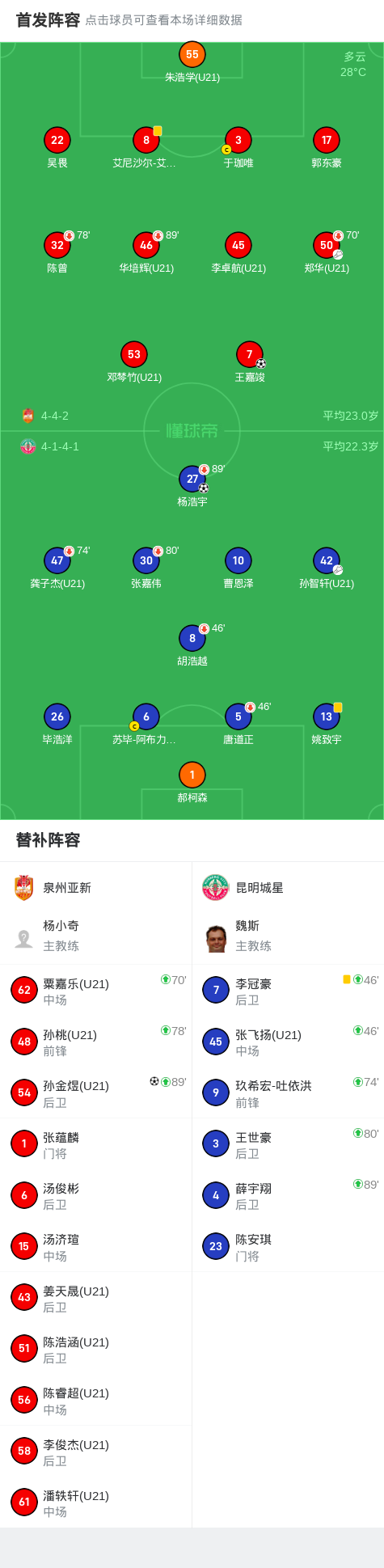 泉州亚新2-1昆明城星,杨浩宇独闯龙潭抽射破门,孙金煜绝杀