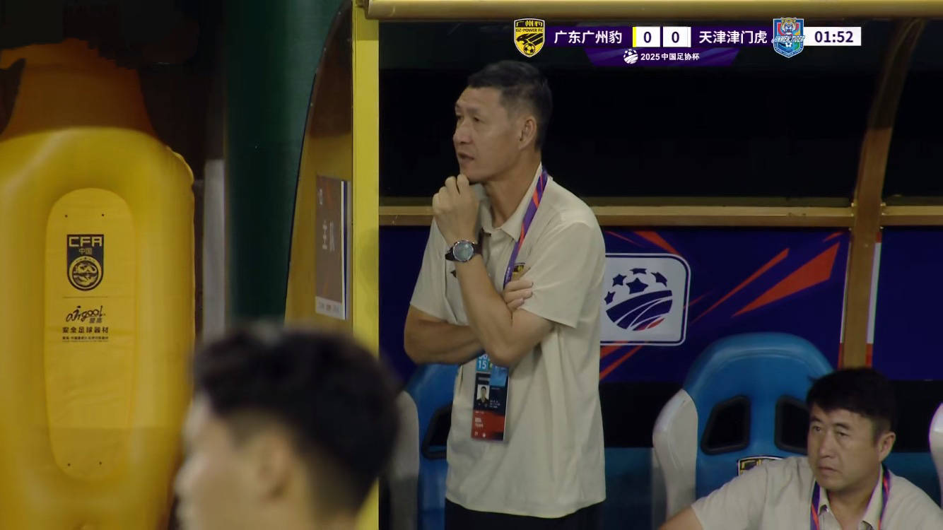 比赛第37分钟,广州豹边路传中,单鹏飞头球攻门被门将拿到,双方都有两名外援坐在替补席,于根伟这一边必然要换上外援了,否则先丢球就难了。广州豹则是有多种选择,毕竟晋级的欲望没有那么强,上半场最后阶段,马俊亮内切左脚射门偏出。整个上半场,看不出是中超球队踢中甲,两队水平在伯仲之间,就看于根伟和黎兵下半场的换人和临场指挥。
