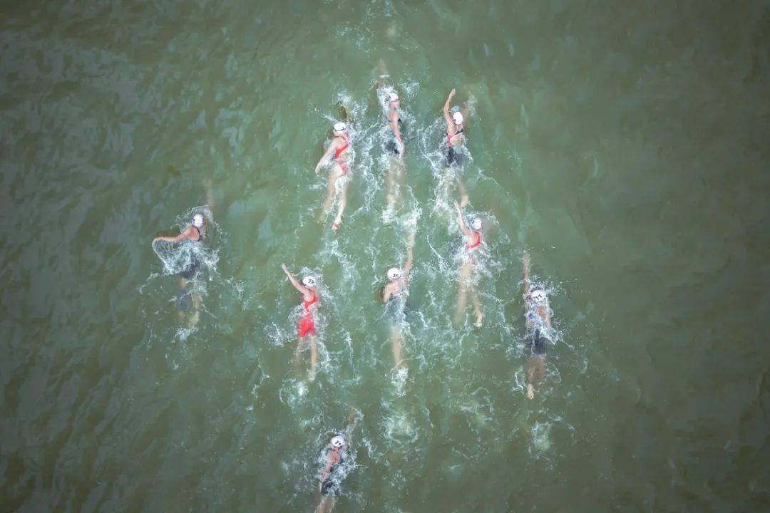 碧波千顷映城堞,一脉清泓绕楚阙。上午8点,男子优秀组与U23组在濛濛细雨中同时出发。游泳赛段伊始,来自香港铁人三项队的Robin Elg率先发力并成功占据了领先位置,山东361°铁人三项队的张玺瑞、重庆铁人三项队的殷硕浛采取了跟游的战术,第二圈张玺瑞突围成功,来到领游位置,绕过最后一个浮标后,河南铁人三项队的范俊杰和山东361°铁人三项队的张驰强势追击,与张玺瑞齐头并进,最终,比赛经验更为丰富的范俊杰第一个起水,游泳赛段成绩为18分23秒。
