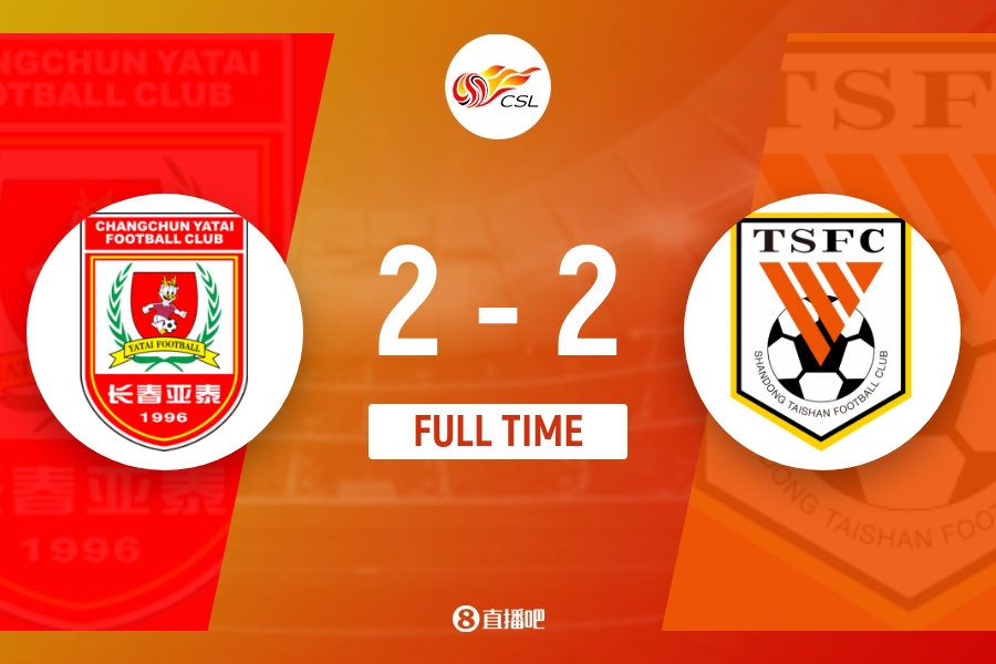 下半场伤停补时6分钟,全场比赛结束,最终长春亚泰2-2山东泰山。