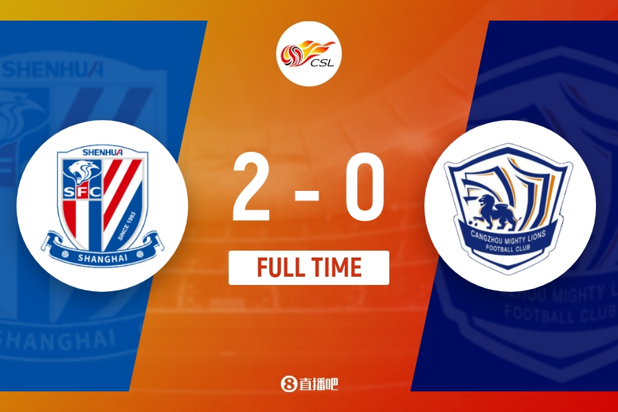 下半场补时5分钟。最终全场比赛结束,上海申花2-0沧州雄狮。