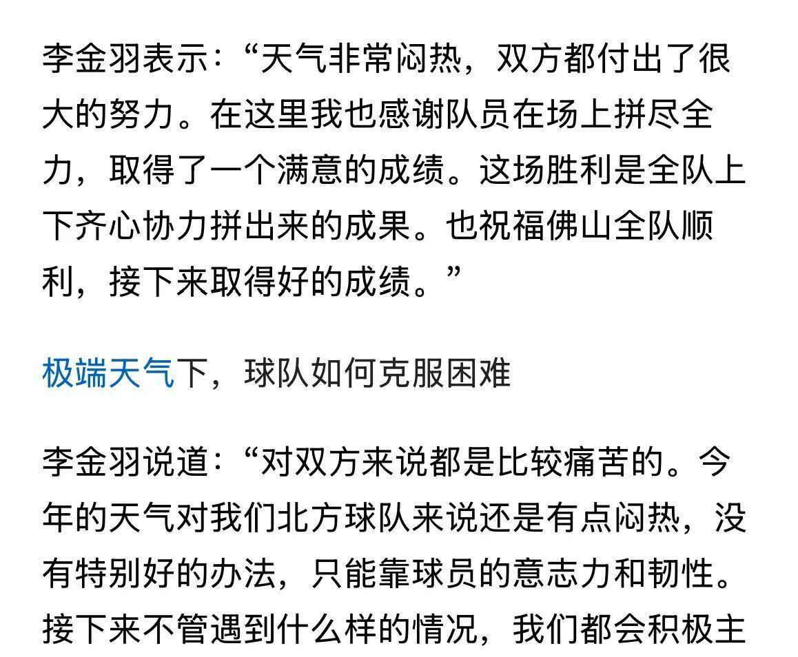他紧接着的发言更耐人寻味:“今年的闷热天气对北方球队是挑战,没有特别好的办法,只能靠球员的意志力和韧性。